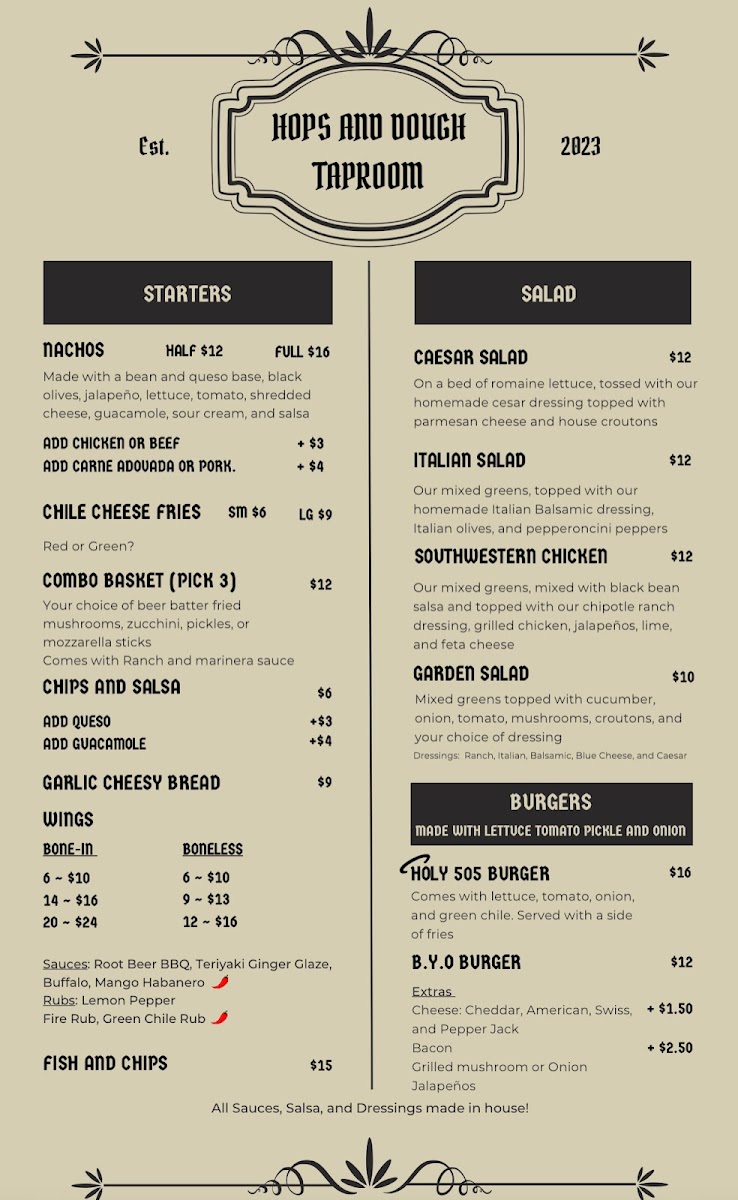 Welcome to Hops & Dough Taproom, a vibrant culinary gem located in Albuquerque, NM. This brewpub is celebrated not just for its impressive selection of craft beers but also for a mouthwatering menu that showcases creativity and flavor.